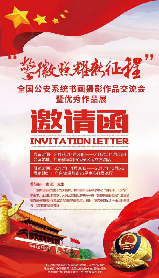 In order to promote the in-depth development of the theme activities of the national public security organs to "welcome the loyalty and security of the 19th National Congress", create a good atmosphere to welcome the party's 19th National Congress, educate and guide the public security police to perform their duties and duties with enthusiasm and enthusiasm. Fighting for the victory of the party's 19th National Congress to create a safe and stable political and social environment, the Publicity Bureau of the Ministry of Public Security and the Party Committee of the Ministry directly under the Ministry, the National Public Security Federation, the Guangdong Shoumenshen Group and other units and enterprises will jointly organize the national public security system to "gree the 19th National Congress" Loyalty and security, the theme of painting and calligraphy exhibition. In order to do a good job in this painting and calligraphy exhibition, the theme paintings and calligraphy works are now collected for the national public security organs.